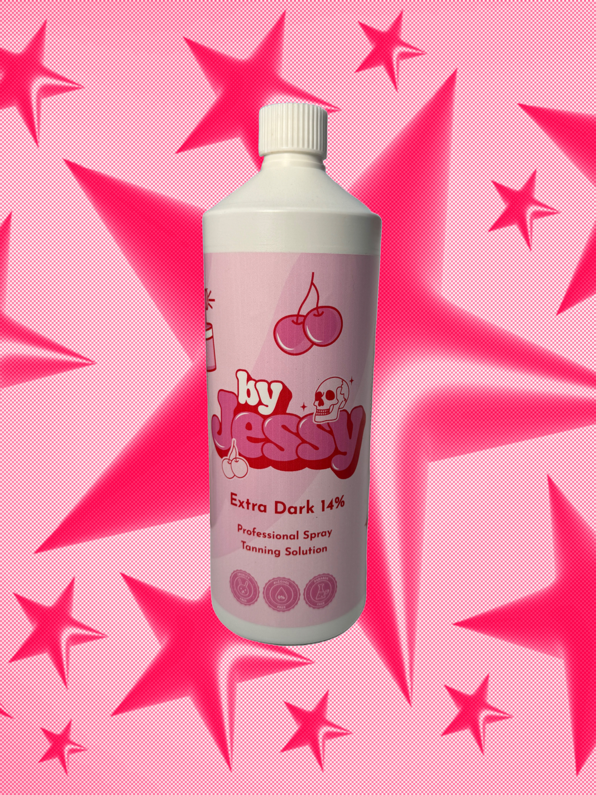 By jessy spray tan solution is 14% DHA and is designed especially for medium - dark skin types or experienced tanners!